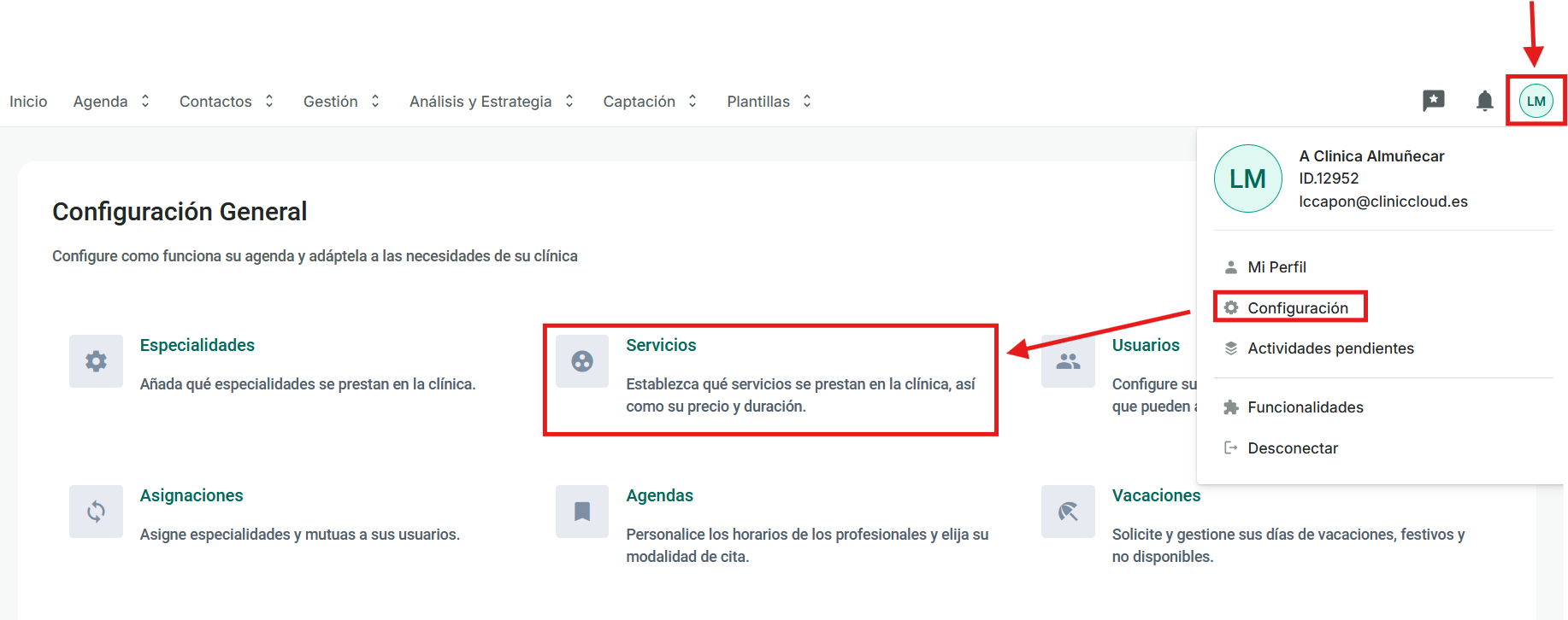 - 1. CONFIGURACIÓN > SERVICIOS: