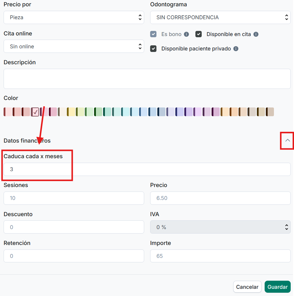Por ejemplo, si establecemos en el campo Caducidad 3 meses y el día 1 de Enero de 2023 creamos un bono para ese servicio, ese bono caducará automáticamente el día 1 de Abril de 2023.