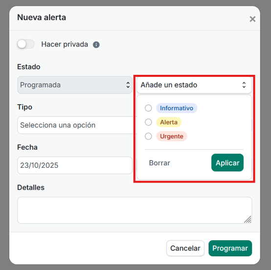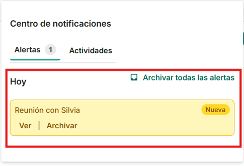 Cuando clicamos en esta campana podremos ver las alertas que tenemos hoy: