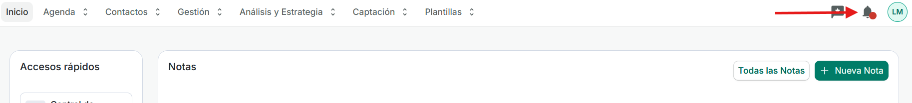 Una vez llegado el día y la hora que hemos configurado en nuestro aviso, aparecerá un punto rojo en la campana que tenemos en la parte superior derecha: