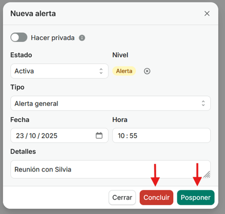- Si clicamos en ver podremos concluirla o posponerla: