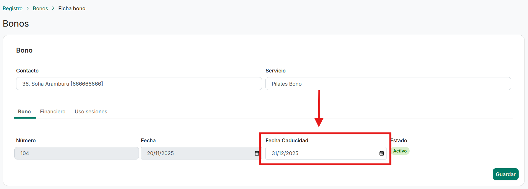 Podemos verificar dichos pasos a través de Gestión > Registro > Bonos, accediendo a la ficha del bono: